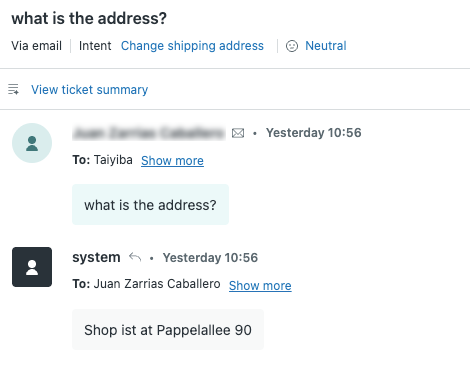 Com essa nova funcionalidade, você pode escolher entre usar o usuário do sistema ou um usuário específico como remetente das respostas de e-mail do agente de IA. Isso significa que, no espaço de trabalho do agente, a visualização dos tickets agora pode refletir mais precisamente a sua configuração de marca. Os clientes continuarão a receber as respostas em sua caixa de entrada com o nome da marca e endereço de suporte que você configurou, mas a visualização interna pode ser ajustada conforme suas necessidades.