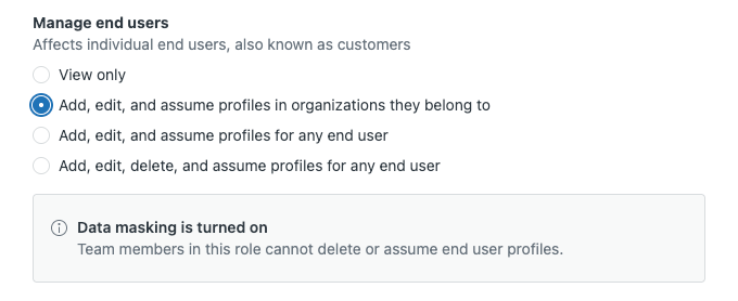 Anteriormente, ao ativar o mascaramento de dados para uma função, as permissões para gerenciar usuários finais e fundir tickets eram desativadas, limitando a capacidade dos agentes de interagir com os dados de forma efetiva. Agora, essa restrição foi removida, permitindo que os administradores ativem essas permissões sem comprometer o mascaramento de dados.