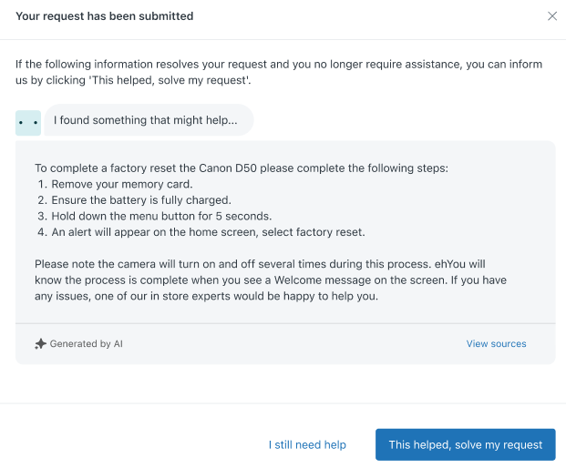 Com a nova atualização, após enviar uma solicitação, os usuários verão imediatamente uma resposta do agente de IA. Isso não só agiliza o processo de resolução como também evita a necessidade de alternar entre diferentes canais. Aqui estão alguns destaques: